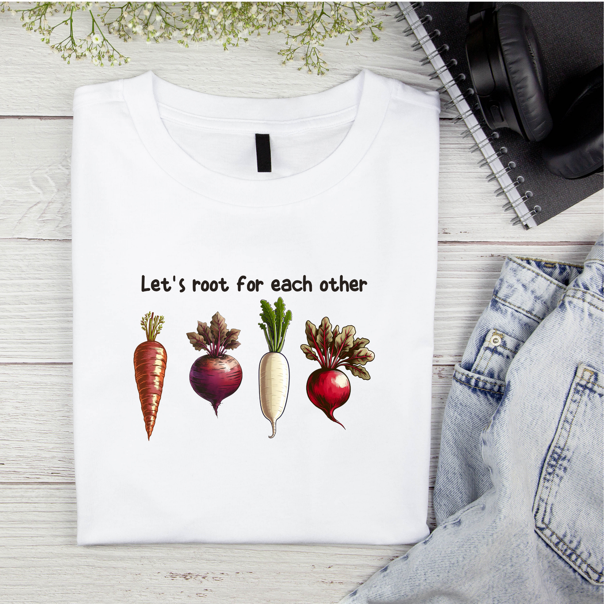 Let’s Root for Each Other T-Shirt – Uplifting Vegetable Pun Tee for Gardeners & Plant Lovers