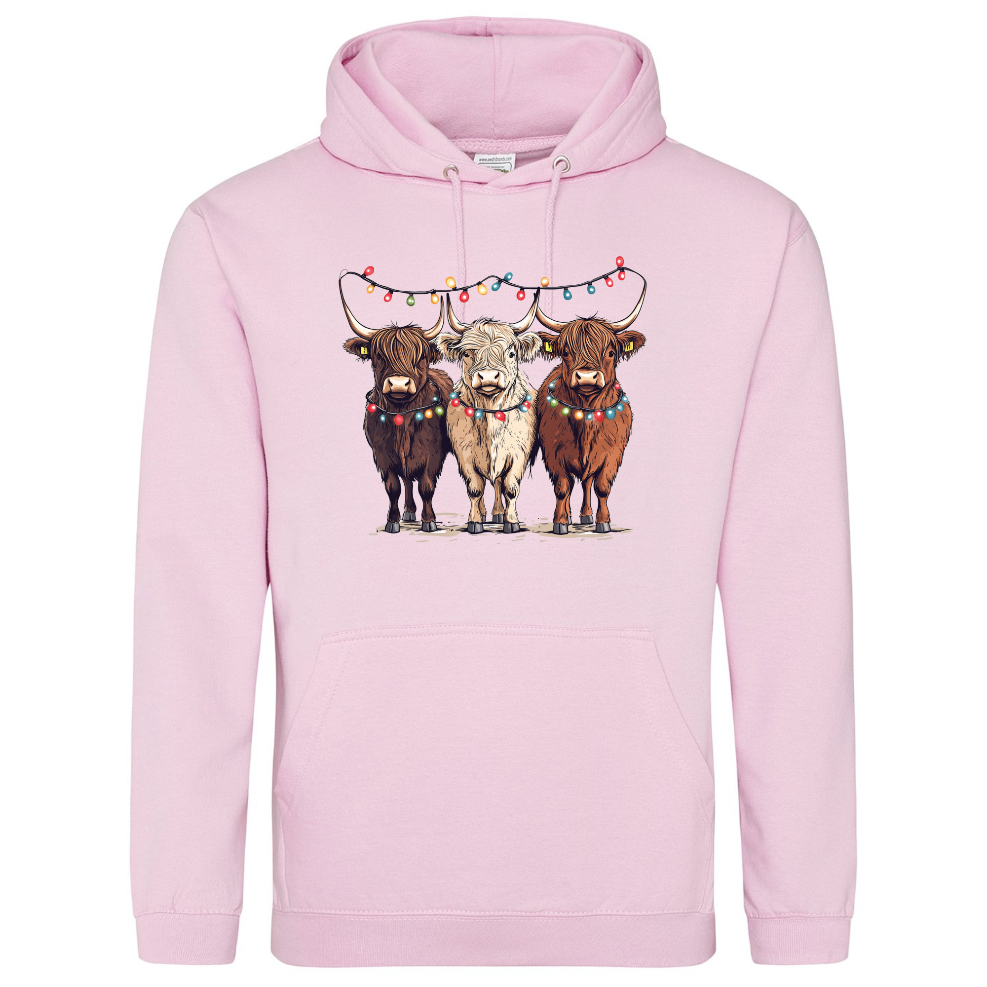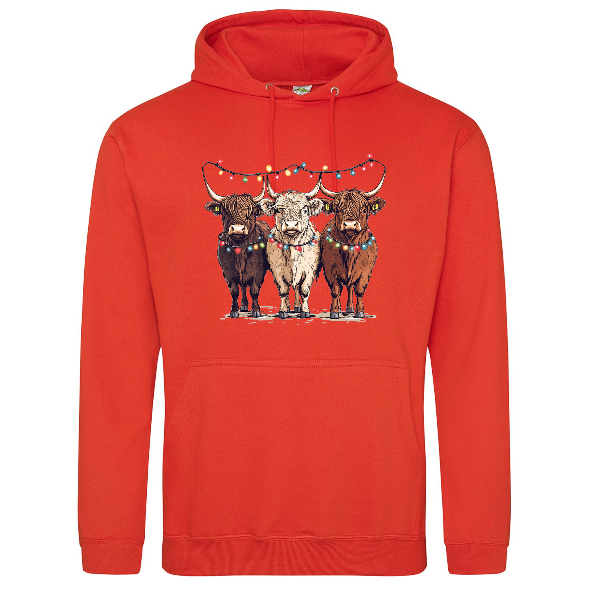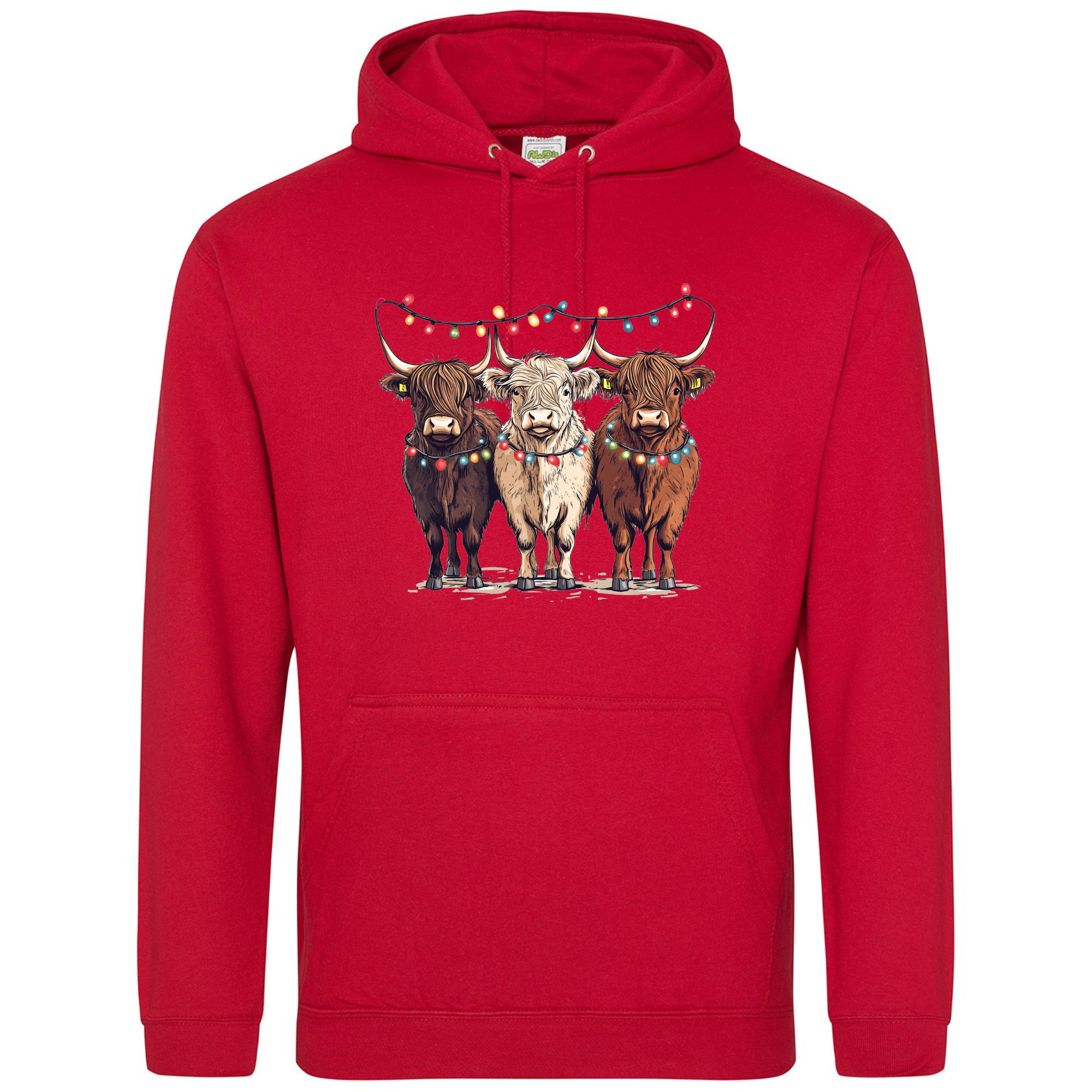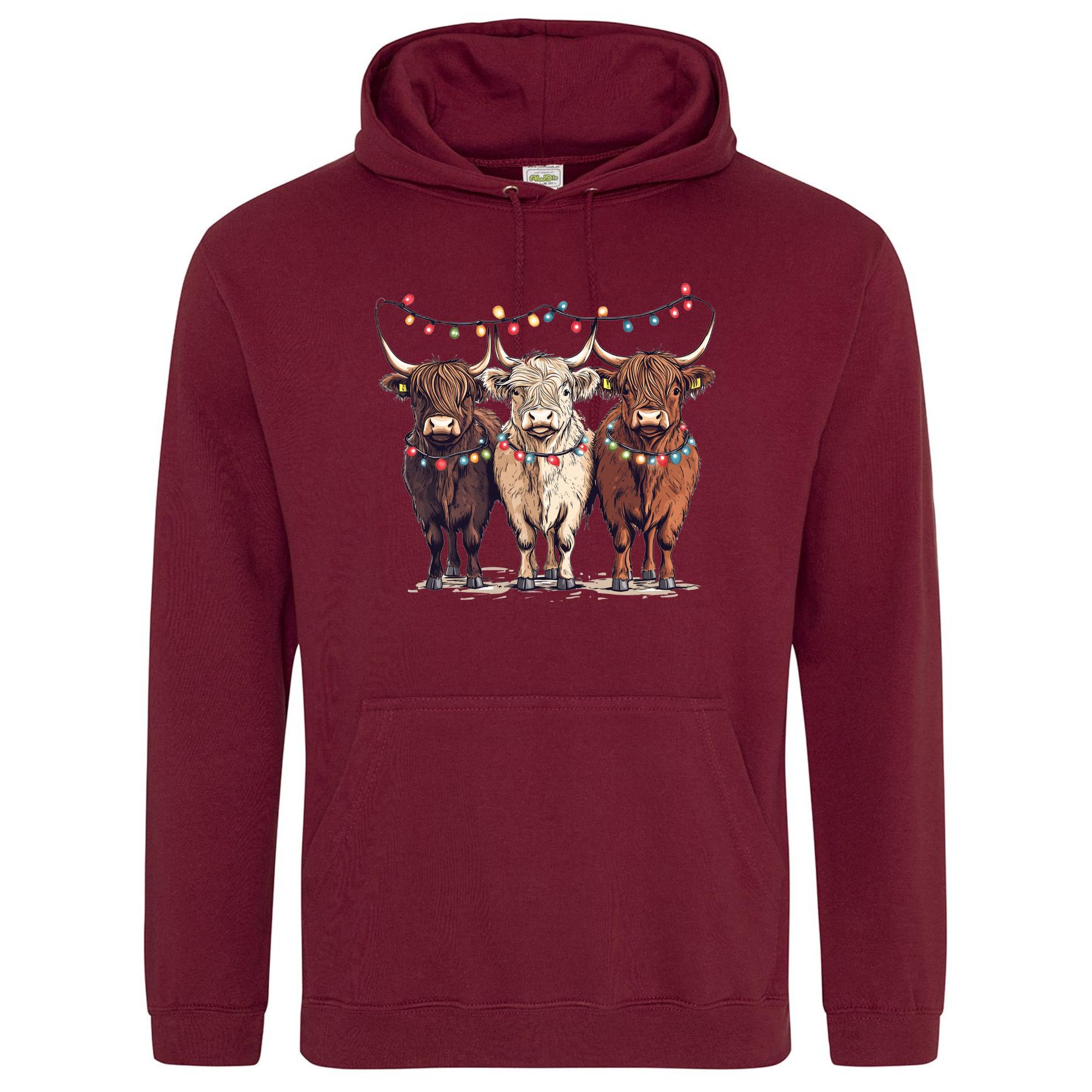 Bring a smile to your festive season with our Christmas Cows Hoodie — featuring three adorable Highland cows all dressed up in their Christmas best, complete with fairy lights and festive charm. 🐮✨