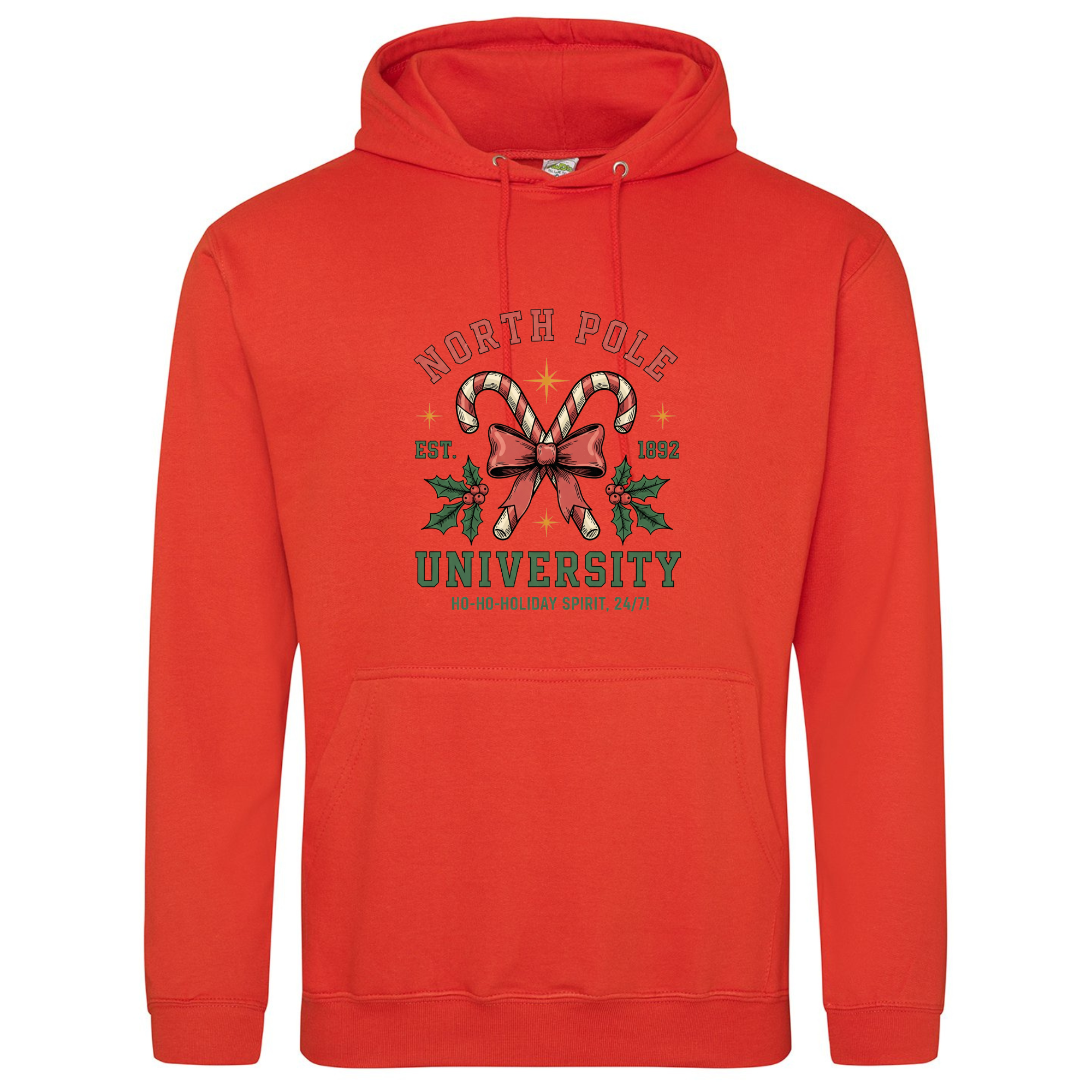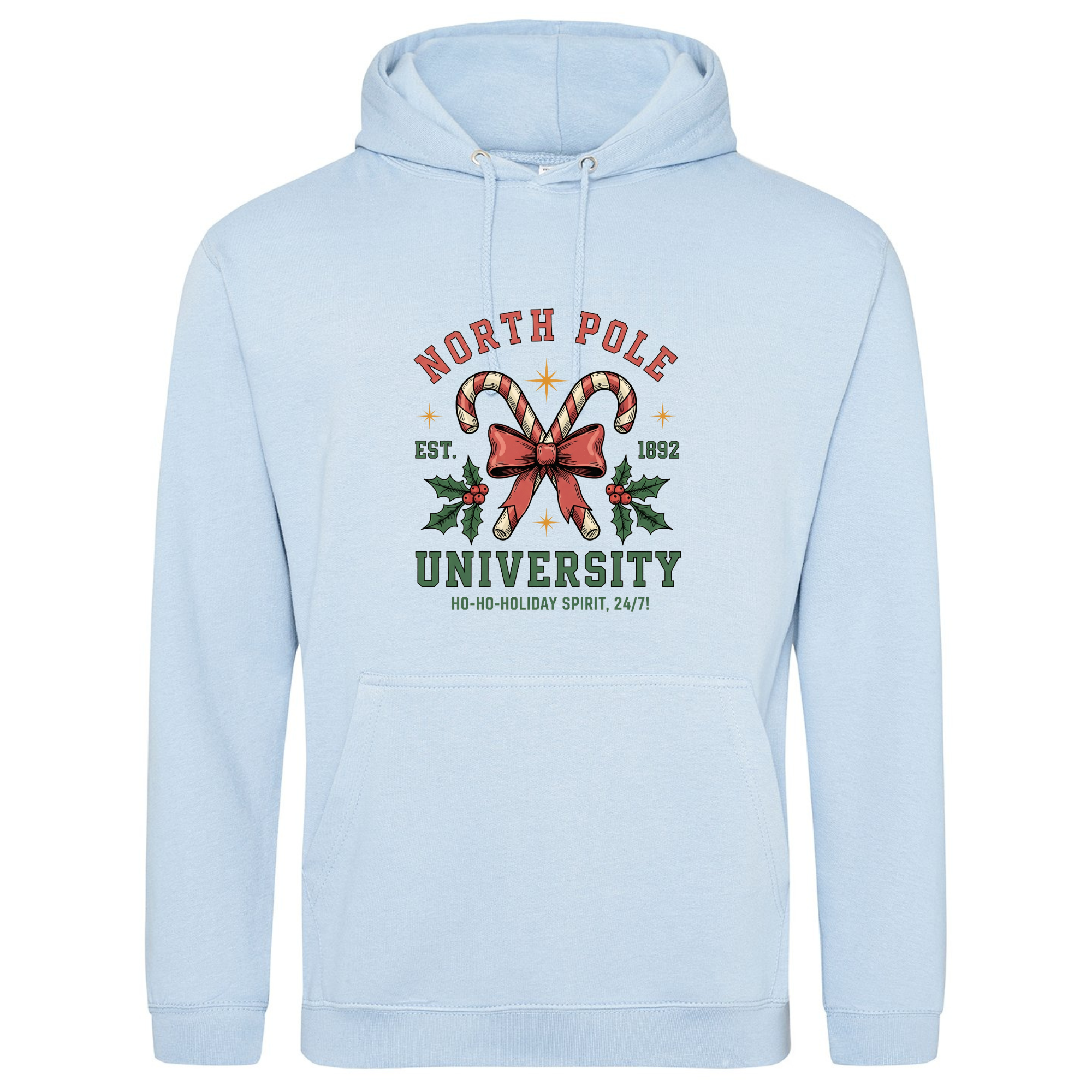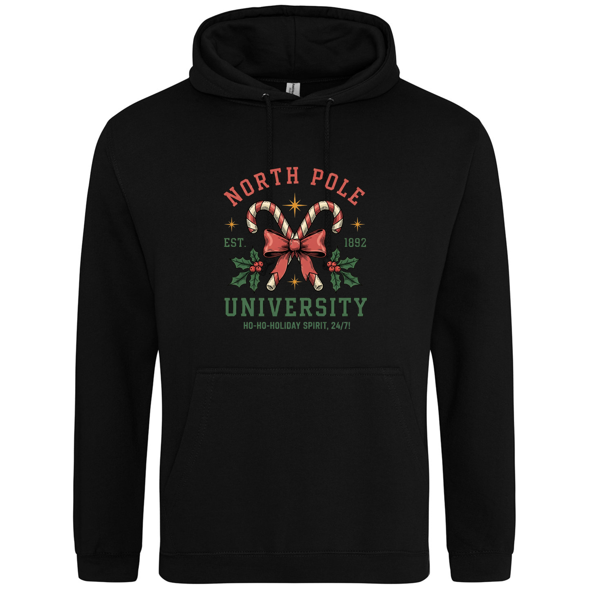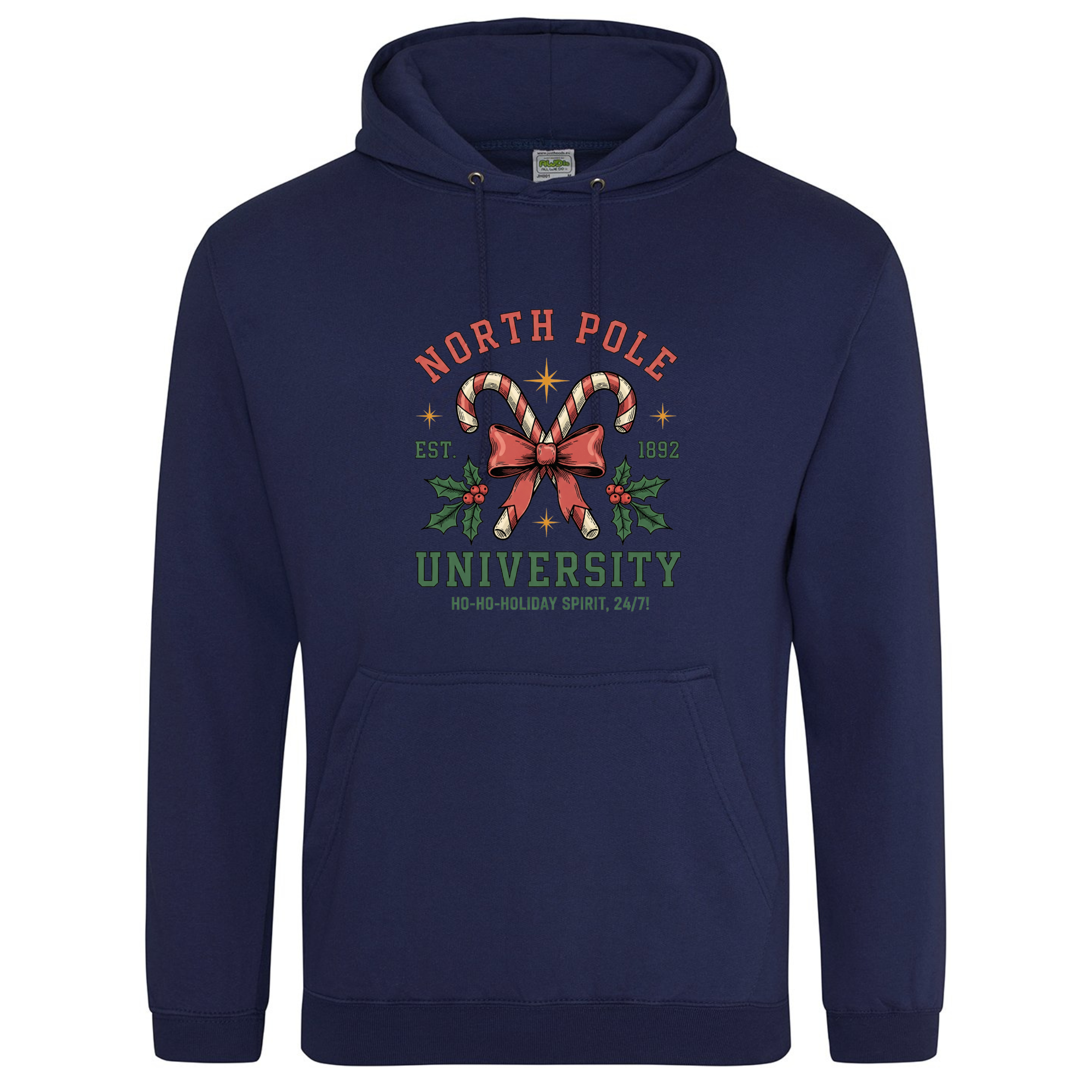 Join the most festive faculty around with our North Pole University Hoodie! 🎄🎓 Featuring candy canes crossed with a bow and holly leaves, this design celebrates the official school of holiday cheer — where the motto is “Ho-ho-holiday spirit, 24/7!” Made from super-soft fabric and perfect for layering through the winter, it’s a cosy reminder that Christmas spirit is always in session.