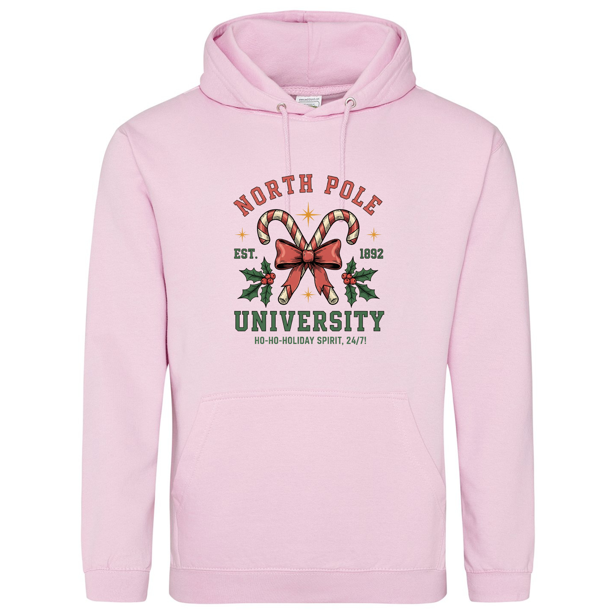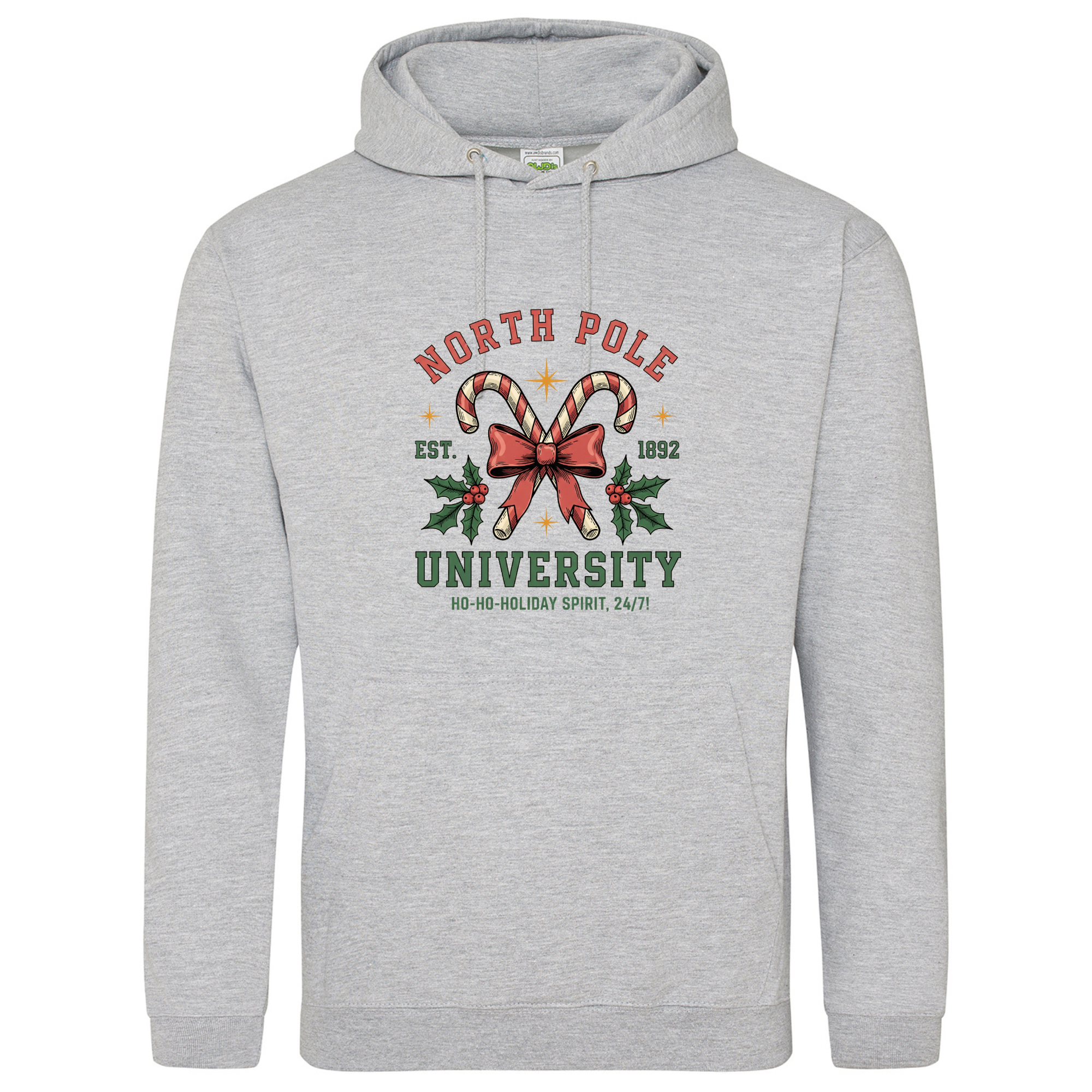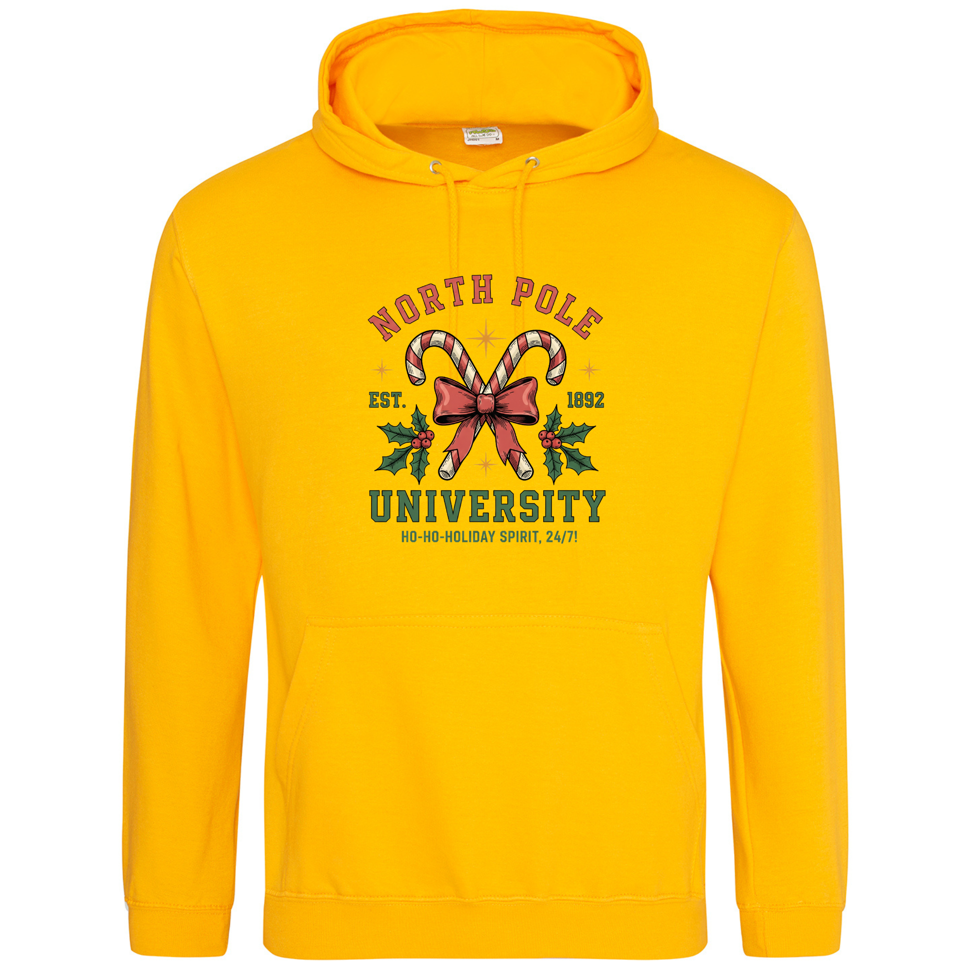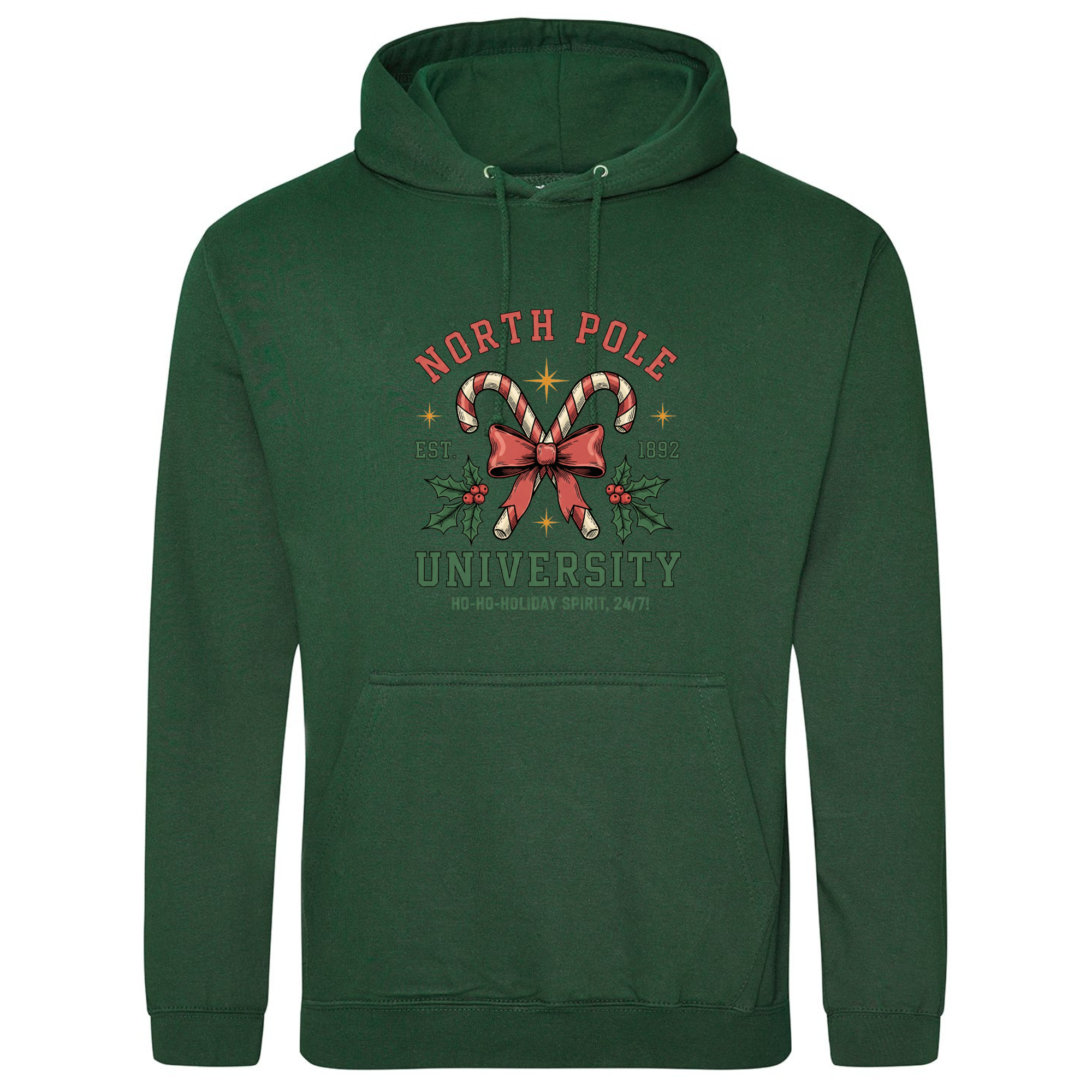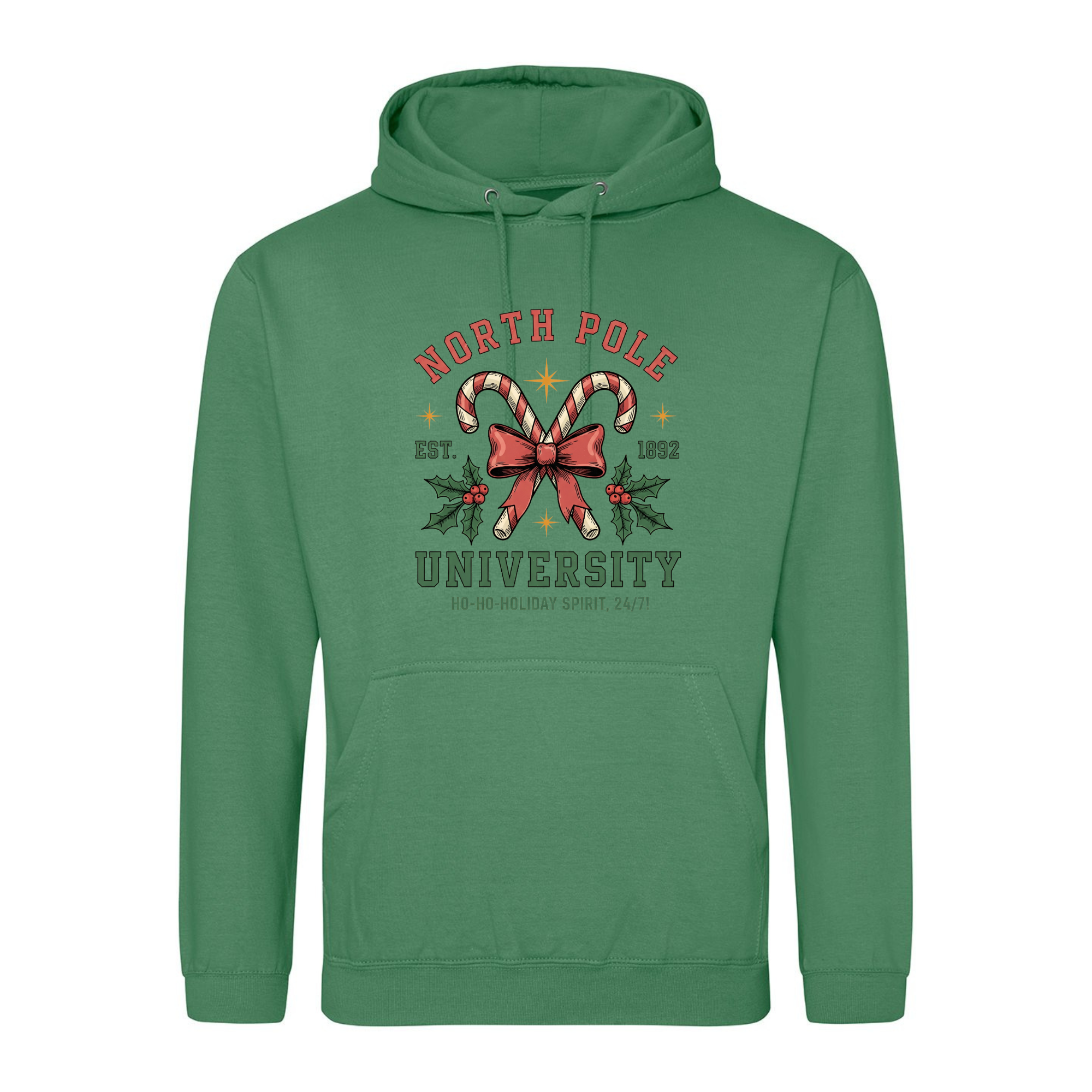 Join the most festive faculty around with our North Pole University Hoodie! 🎄🎓 Featuring candy canes crossed with a bow and holly leaves, this design celebrates the official school of holiday cheer — where the motto is “Ho-ho-holiday spirit, 24/7!” Made from super-soft fabric and perfect for layering through the winter, it’s a cosy reminder that Christmas spirit is always in session.