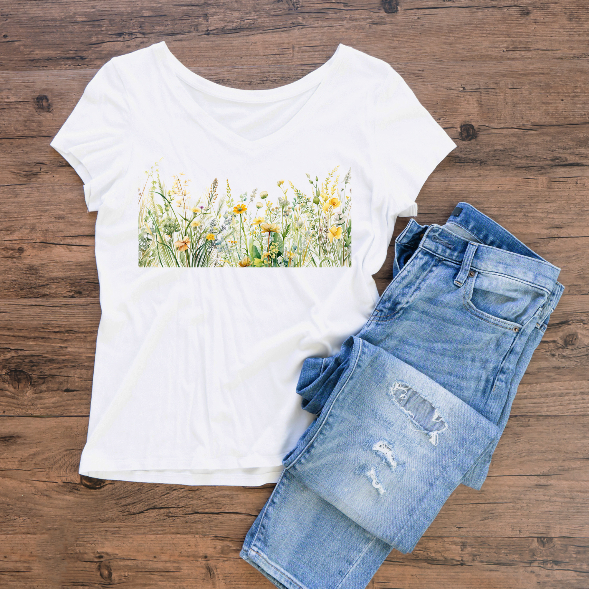 Wildflower Meadow Border T-Shirt – Botanical Floral Print for Nature Lovers
